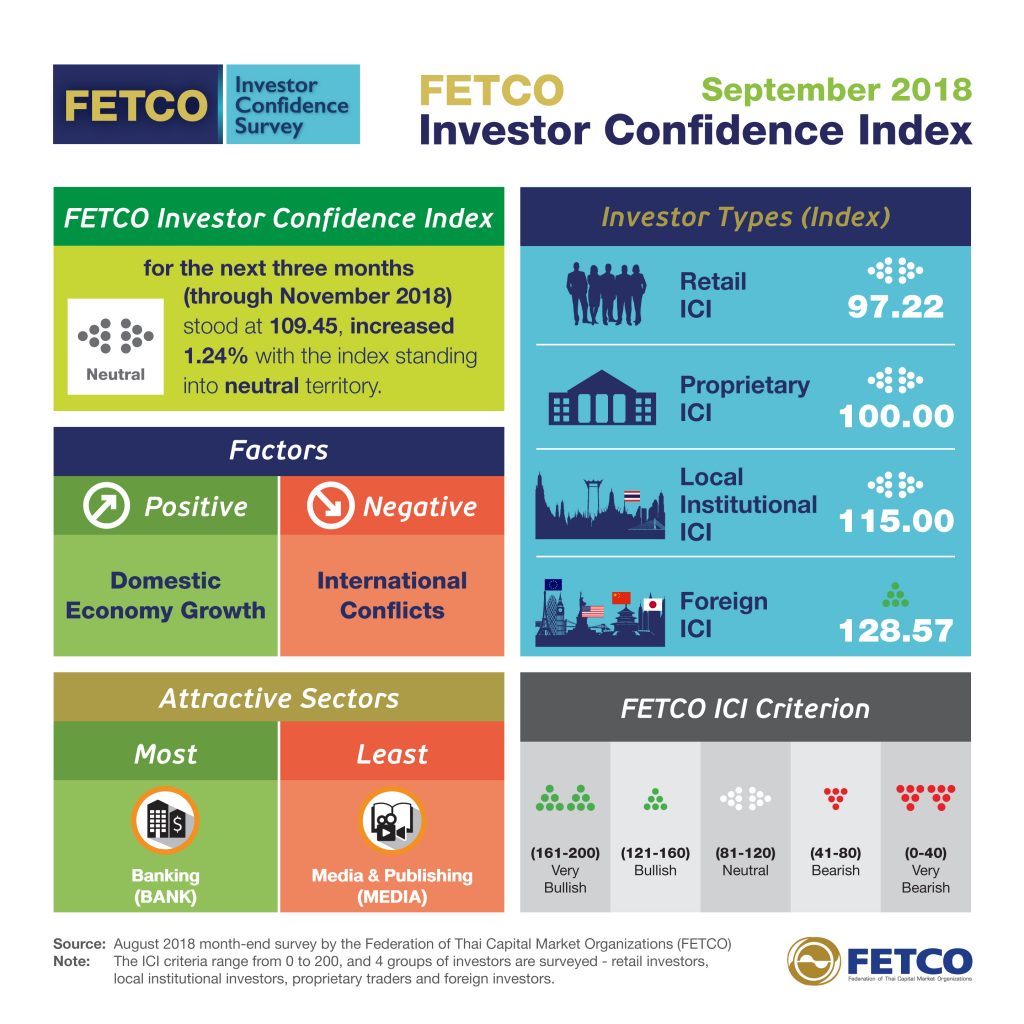 Paiboon Nalinthrangkurn, Chairman of the Federation of Thai Capital Market Organizations (FETCO), made the following comments about the September 2018 FETCO Investor Confidence Index (ICI):