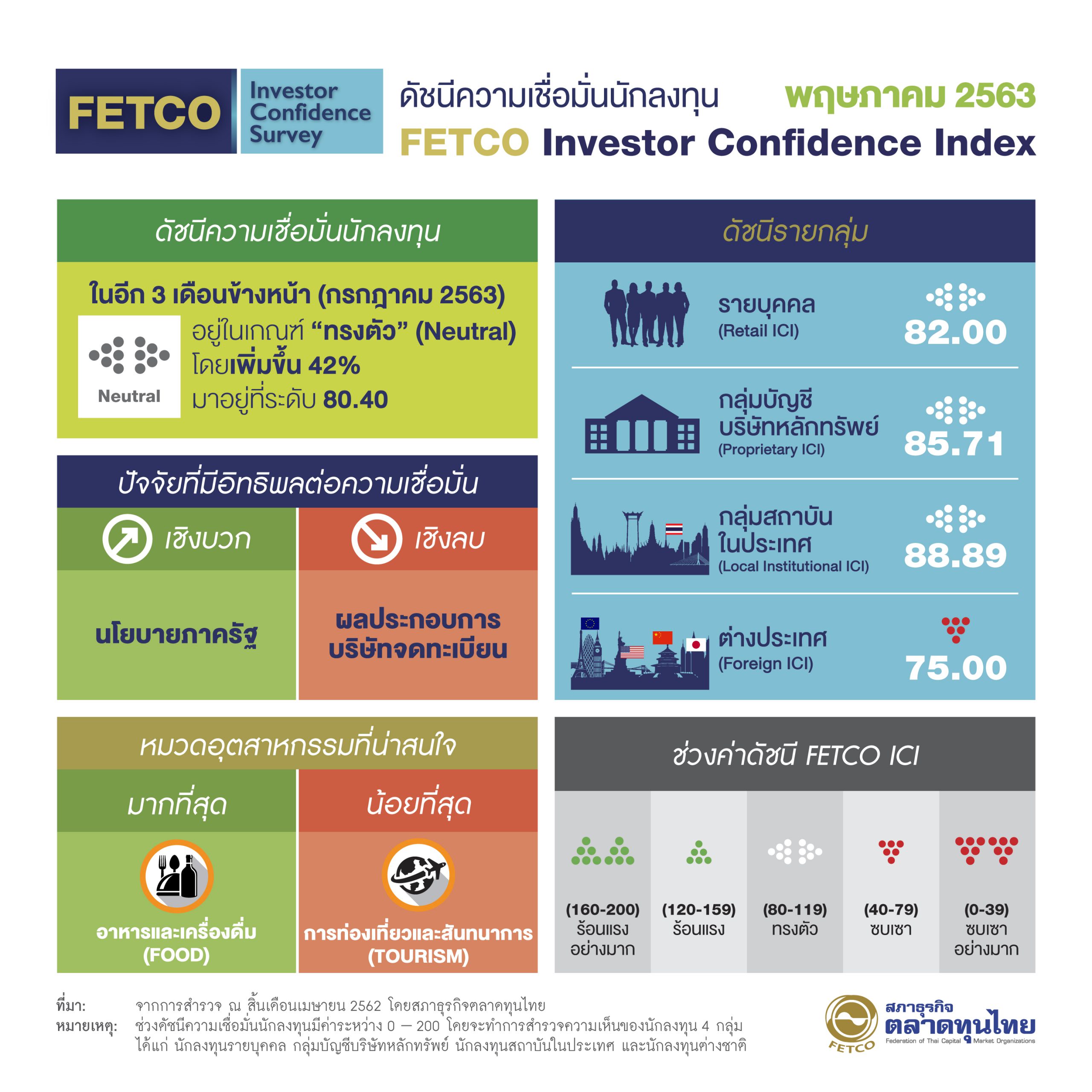 ผลสำรวจดัชนีความเชื่อมั่นนักลงทุน ประจำเดือนสิงหาคม 2563...