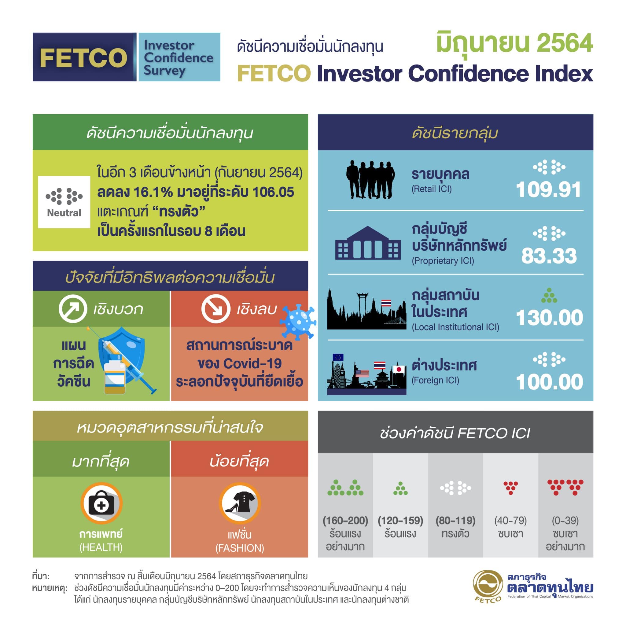ดัชนีความเชื่อมั่นนักลงทุน (FETCO Investor Confidence Index) สำรวจในเดือนสิงหาคม...