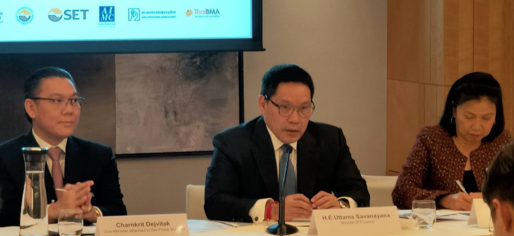 การจัดการประชุม Hong Kong Roadshow “Thailand Economic Outlook and Opportunities in Capital Markets ในครั้งนี้ จะช่วยสร้างความเชื่อมั่นให้แก่นักลงทุนสถาบันต่างประเทศต่อเสถียรภาพทางเศรษฐกิจและความต่อเนื่องของนโยบายเศรษฐกิจของรัฐบาลไทย พร้อมเชิญชวนให้นักลงทุนเข้ามาร่วมลงทุนในภาคตลาดทุนมากขึ้น มุ่งส่งเสริมศักยภาพของเศรษฐกิจและเสริมสร้างขีดความสามารถในการแข่งขันของไทย โดยในการประชุมครั้งนี้ได้รับเกียรติจากดร.อุตตม สาวนายน รัฐมนตรีว่าการกระทรวงการคลัง และผู้แทนสำนักงานเศรษฐกิจการคลัง ร่วมนำเสนอข้อมูลภาพรวมทางเศรษฐกิจและนโยบายเศรษฐกิจและการลงทุนของไทย โดยรัฐมนตรีว่าการกระทรวงการคลังได้ชี้แจงถึงสภาวะด้านการคลังและและการเงินที่แข็งแกร่งของไทย การกระตุ้นเศรษฐกิจเพื่อรองรับเศรษฐกิจโลกที่ผันผวน การให้ความสำคัญของการปฏิรูปเศรษฐกิจไทยเพื่อนำไปสู่การพัฒนาที่แข็งแกร่งและยั่งยืน โดยจะเร่งรัดการลงทุนในโครงสร้างพื้นฐานทั้งด้านกายภาพและดิจิทัล โดยเฉพาะ